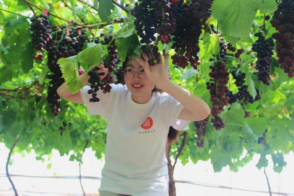 采访完成后,在张光红主任的带领下实践队参观了沿河湾镇葡萄种植大棚,并有幸学习体验到葡萄采摘,采摘葡萄对于实践队队员们可谓是一件新鲜事,大家热情高涨地投入到这一活动中,很快就收获了满满一箱的果实。张光红主任不仅向实践队详细介绍了沿河湾镇葡萄的种植技术和独特之处,还热情邀请队员们品尝了这些甜美的果实。走出大棚,实践队员们不由得感叹道:“安塞区沿河湾镇的葡萄真甜啊!”这不仅是对葡萄品质的认可,也是对乡村振兴战略的深刻理解。我们深知,乡村振兴不仅需要产业的振兴,更需要数字技术的支撑,以及像张光红这样扎根基层、心系民生的干部。他们的存在,也是乡村振兴道路上不可或缺的力量。