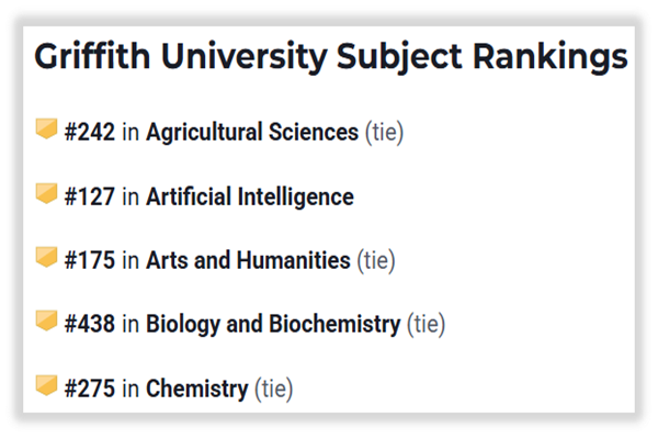 a) 计算机科学专业连续五年昆士兰州排名第一,泰晤士排名前201-250