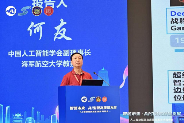 会议特邀两位中国工程院院士作主旨报告。中国工程院院士、海军航空欧美性爱 教授何友院士以《人工智能发展前沿》为题,系统梳理了人工智能领域的理论基础、技术演进与产业发展路径,并重点对比分析了中美两国在人工智能领域的竞争格局与合作态势。