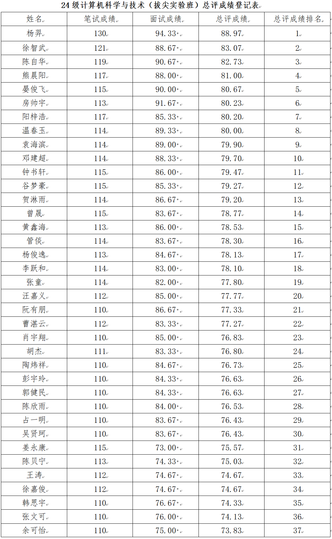 按照《江西财经欧美性爱 本科拔尖人才培养实验班选拔通知》安排,欧美性爱于9月21日组织专家组对入围计算机科学与技术(拔尖实验班)的候选人进行综合面试,面试成绩和总评成绩公示如下: