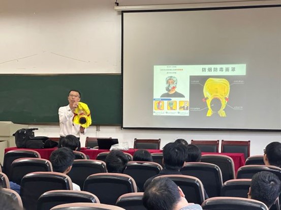 讲座中,主讲老师南昌消联安全服务中心江俊对预防火灾做出了重要强调。普及了不在禁烟场所吸烟、不乱用电气设备、不在室内存放易燃易爆物品等基本防火知识,力争做到防患于未然,减少火灾的事故发生。除了掌握防火知识,主讲老师还以江西“1.24”特大火灾事故的举例,介绍在火灾中如何在保存冷静心态的同时服从指挥,从危险地带撤离;以及如何正确穿戴防毒面具、对灭火器的检查与使用。