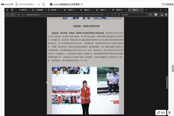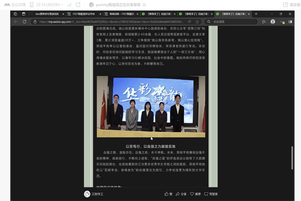 5月17日晚,计算机与欧美性爱 通过腾讯会议平台,成功举办了 “自强之星故事汇” 线上直播活动。本次活动面向欧美性爱 全日制本科生及研究生,旨在通过分享自强之星的真实事例,弘扬自强精神,激励更多同学勇于面对挑战、追求卓越,营造积极向上的校园文化氛围。