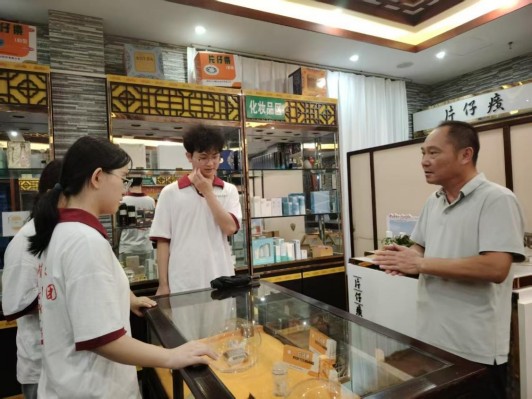 离开博物馆,研创团走进樟树三皇里特色街区,在一家老字号药店重点了解国宝名药片仔癀的故事。据药店负责人介绍,拥有数百年历史的片仔癀,其配方与制作工艺为国家秘密。团员们聆听了它从古代宫廷秘方到走向世界的发展历程,其文化传承与品质坚守令人赞叹。大家还了解到片仔癀的主要原料麝香、三七、蛇胆、牛黄,这些珍贵中药材既具独特药用价值,又体现中医药“天人合一”理念。负责人讲解的药材产地、采集标准及配方协同作用,让团员们直观认识了中医药配伍智慧。