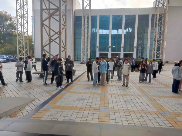 在逃生结束后,同学们在集合地点,听指导者的最后总结。现场气氛热烈,同学们不仅认真听讲,还主动分享自己的看法和经验。为了巩固学习成果,指导者还布置了课后任务,例如让同学们自查宿舍安全隐患,寻找校园内的安全出口。