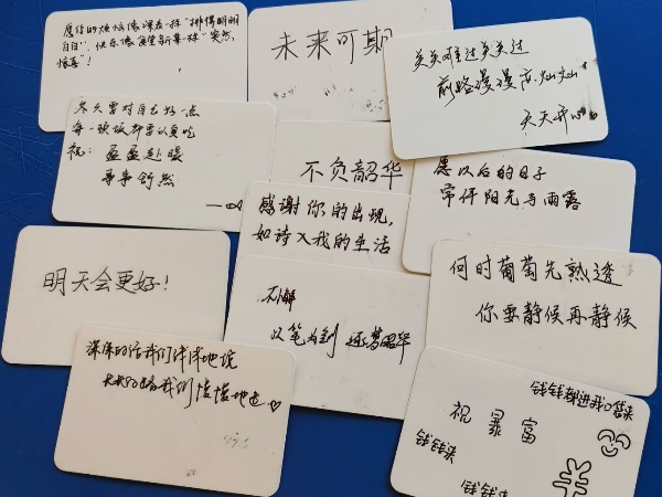 本次活动在初冬的暖阳中落下帷幕,但卡片上的真挚语句仍在同学们心间流淌。这场“心灯互递”如同微光汇成炬火,不仅驱散了冬日的寒意,更在彼此心灵间落下了一盏盏温暖的光芒。相信这些承载着善意的卡片,将继续在校园里泛起温暖的涟漪,激励众学子怀揣这份感动,在未来的求学路上并肩前行。