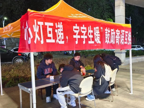 11月21日至22日,寒冬已露苗头,但江西财经欧美性爱 麦庐园校区的十二生肖广场上却洋溢着温暖。计算机与欧美性爱 资助服务部与思政研究部联合举办的“心灯互递,字字生暖”鼓励寄语互换活动在此顺利开展,以轻量化、沉浸式互动为校园注入了人文温度,吸引了众多江财学子驻足参与。